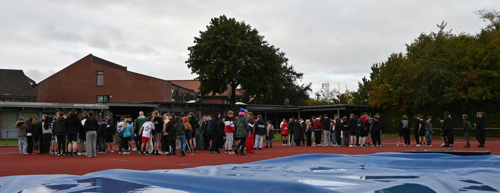 Am Montag, den 07.10.2025 fand wie jedes Jahr die Schulolympiade der Oberschule statt. Sie wurde von Frau Schley und Herrn Kamalow gemeinsam mit der 10. Klasse angeleitet. Unter anderem haben vier Schülerinnen das Aufwärmprogramm übernommen. Der Auf- und Abbau der einzelnen Stationen (z.B. Zielsprint, Zonenweitsprung, Reifenzielwurf und Weitsprung) gehörte auch zu den Aufgaben der 10.Klässler:innen. Das Wetter hat leider nicht so mitgespielt, es war nicht besonders warm und manchmal regnete es ein bisschen, aber die Oberschule hat sich davon nicht stoppen lassen.